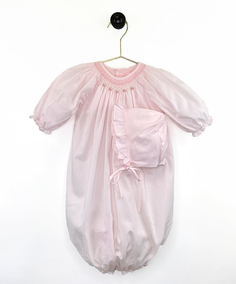 Bishop Smocked Bag & Hat Pink 6M