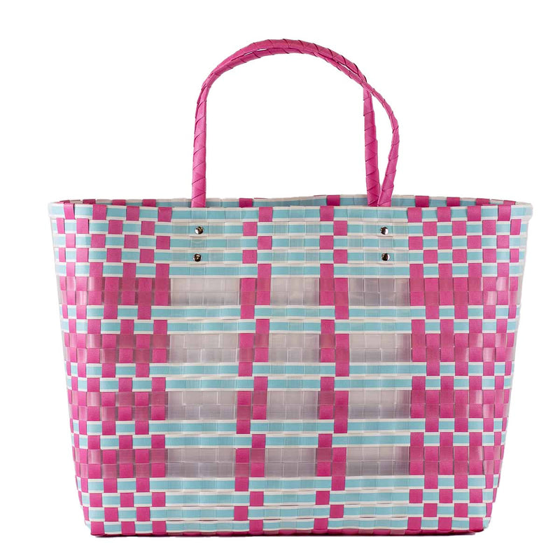 Kimberly Woven Beach Tote Hot Pink/Aruba Blue 17x14x5
