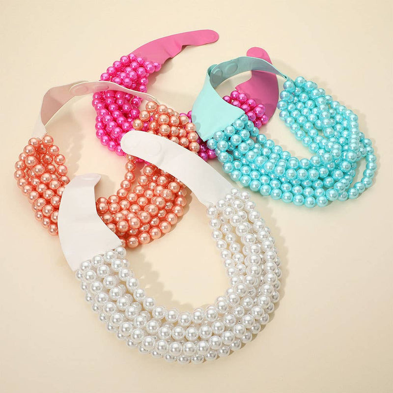 Multi Layered Pearl Beaded Collar Magnetic Necklace: Cream