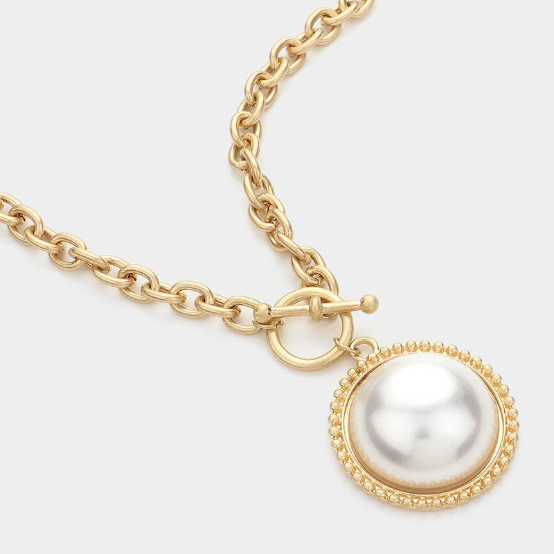 Pearl Cluster Toggle Pendant Chunky Chain Necklace