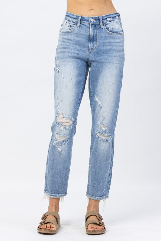 Curvy Judy Blue Mid Rise Boyfriend Jeans