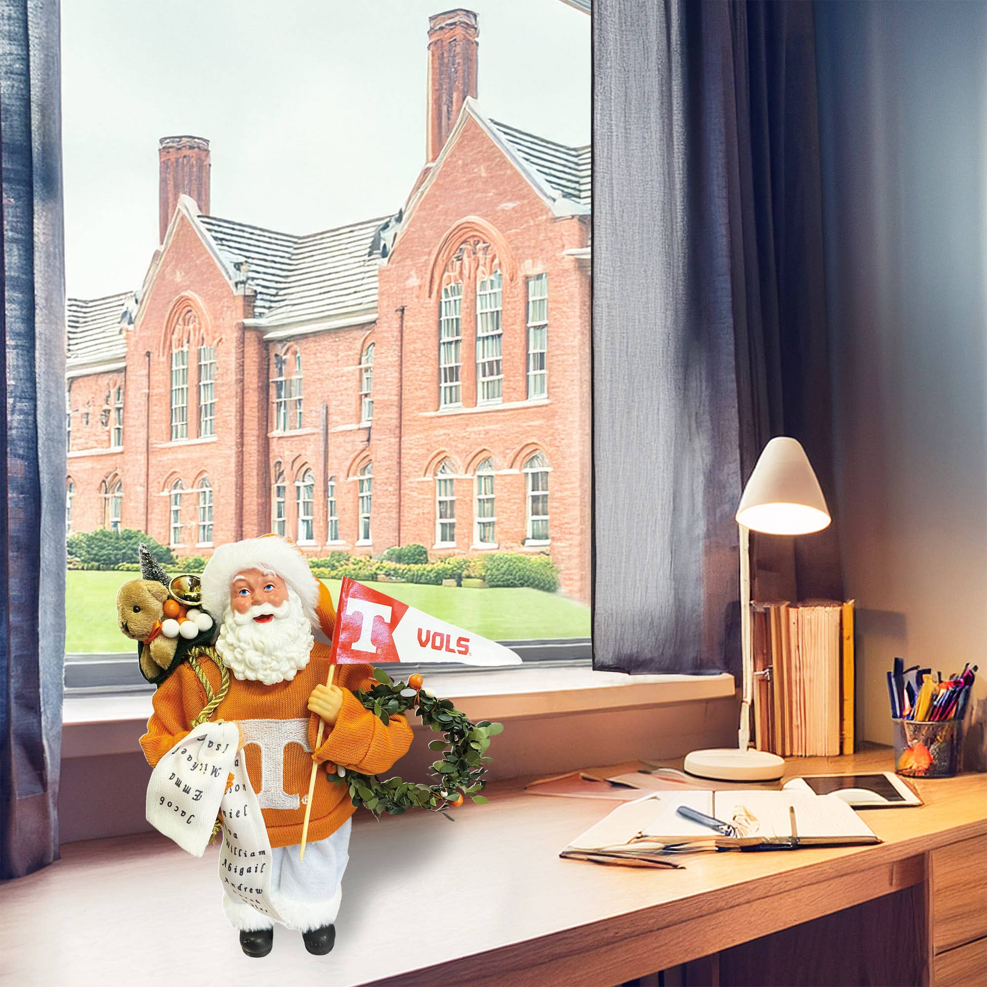 Has your team been good this year? Really good? Well, even if your favorite team didn't take the championship, Santa will make sure you have a perfect season! Wearing his favorite logoed sweater and toting a Christmas list, wreath, school pennant and big sack of goodies, Santa is ready to round up his reindeer and head to your town. Make the holiday season one to remember with this wonderfully handcrafted 12" Tennessee Proud Santa.