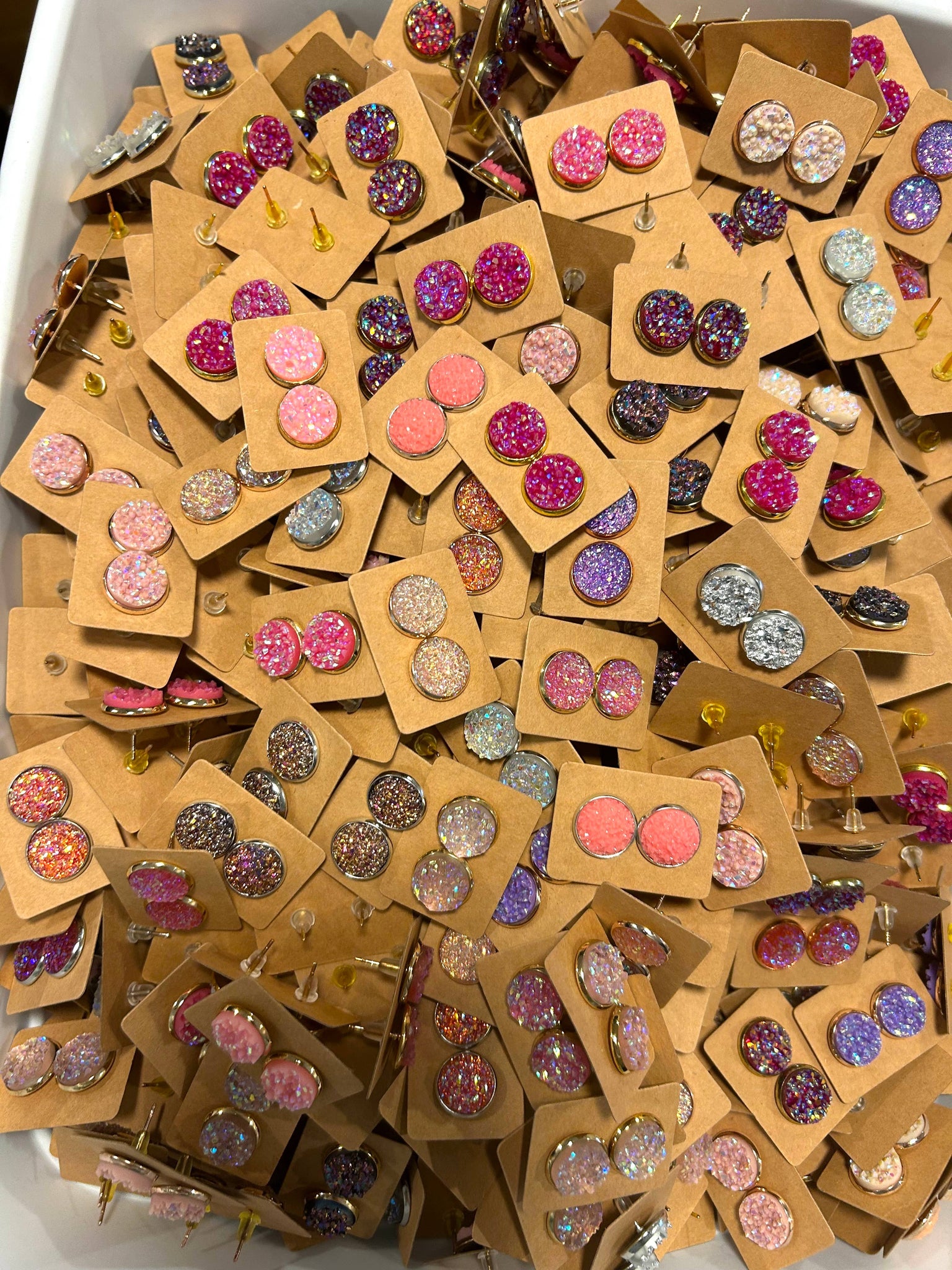 One pair is 50 cents 12mm Druzy Earrings on brown card