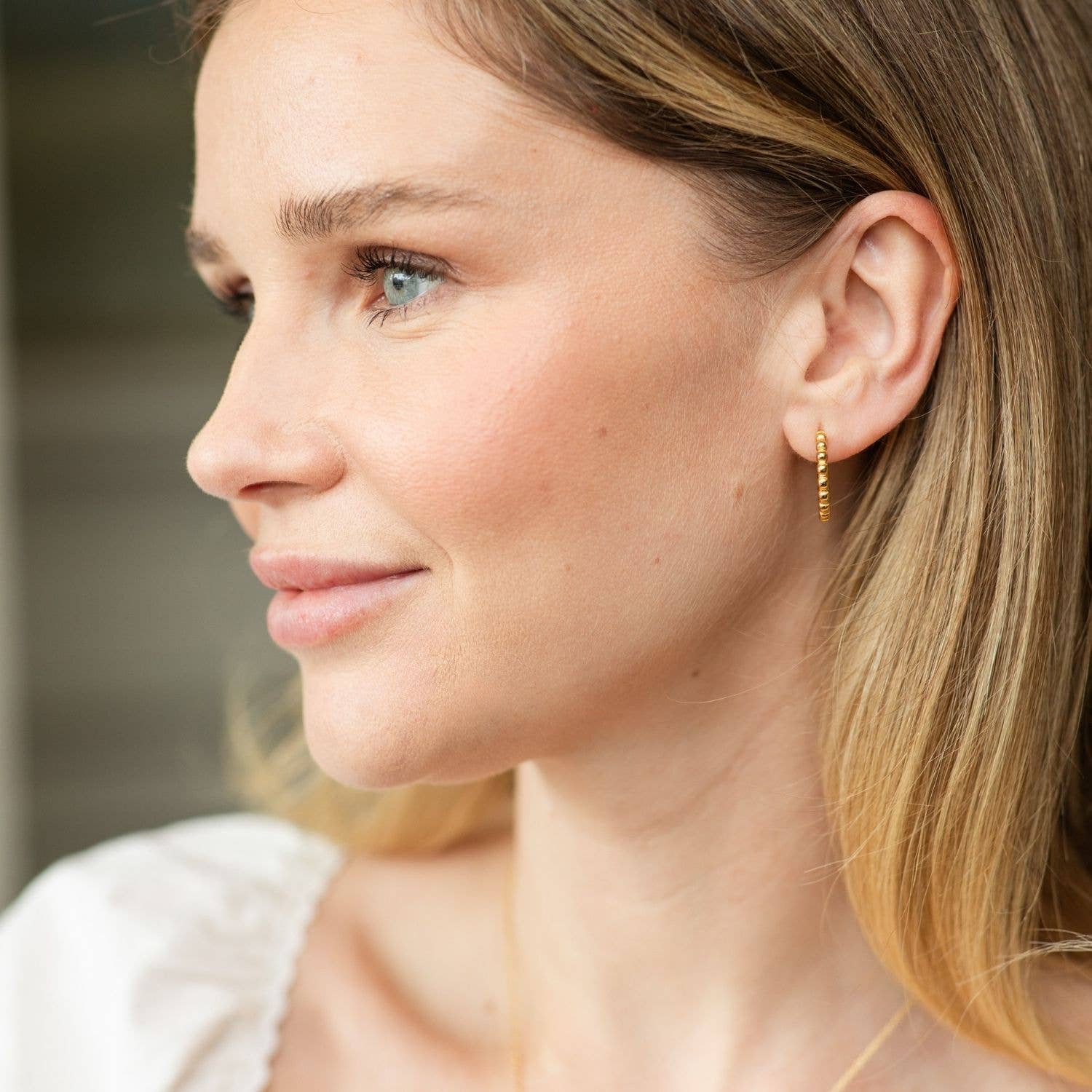 The perfect hoops for everyday - Available in 2 sizes. Did we mention they are water resistant?! Water Resistant Petite: .6" Drop Small: .78" Drop 18k Gold PVD Plated Stainless Steel