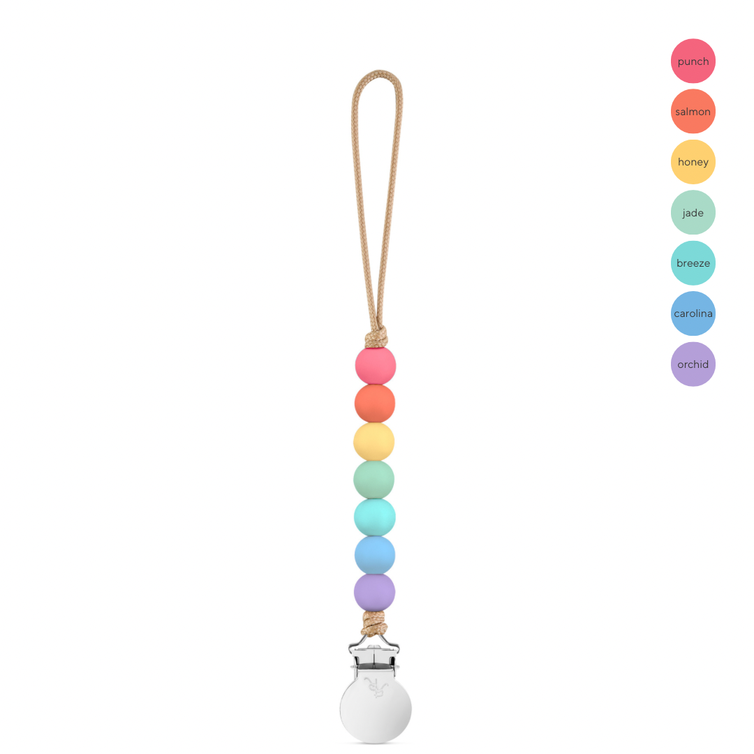 Say goodbye to lost pacifiers with a handmade Cutie Clip. They are not only lightweight and easy to attach but also flexible, safe and handmade by moms in Tennessee. Our pacifier clips are the ideal length, keeping pacifiers off the ground and preventing the risk of strangulation, ultimately giving parents peace of mind. It's not just for pacifiers either—it can also be used with teethers and toys, ensuring they are always within reach and not getting lost. Each Cutie Clip is handmade and inspected by the team to guarantee both safety and durability. With the stainless steel Ryan & Rose clip, you can rest assured that it will stay securely attached.