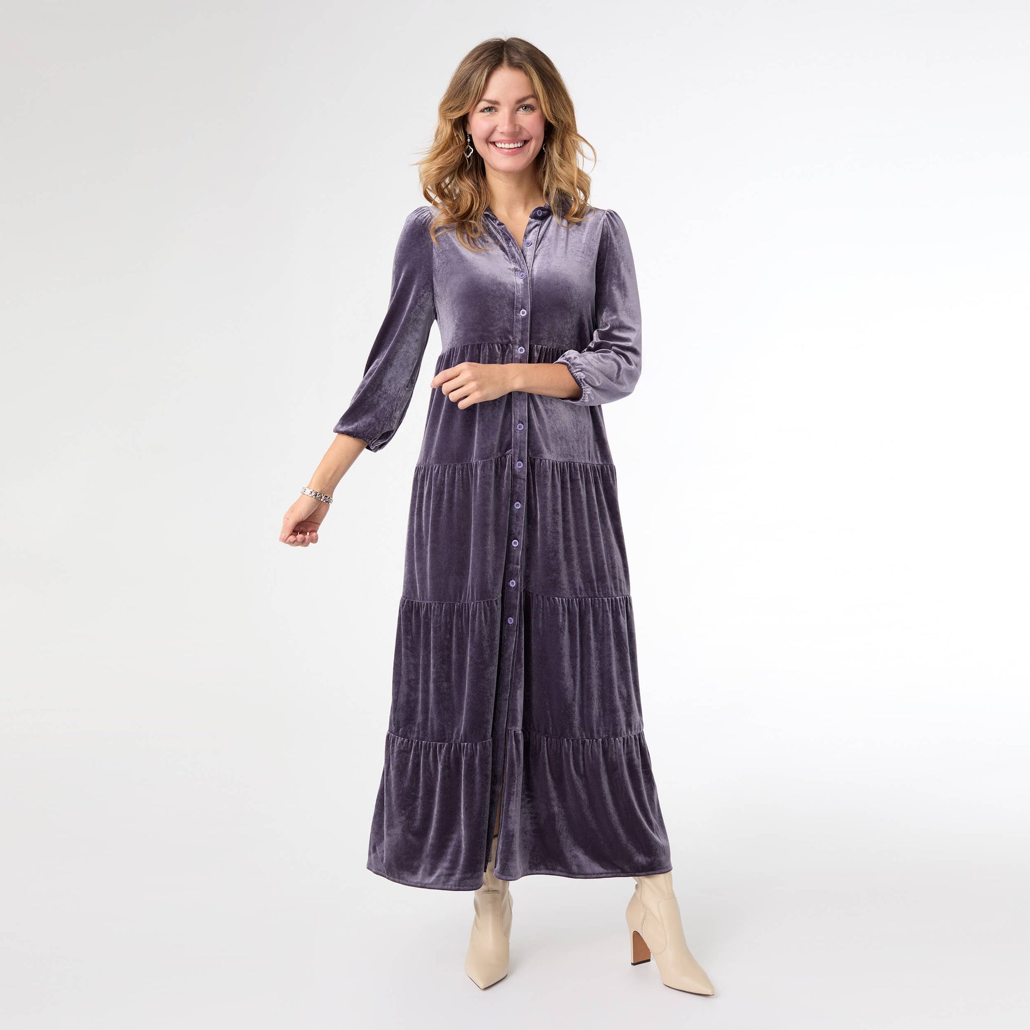 Get ready to sweep them off their feet in the Romance Imagined Dress! Made from luxurious velour, this dress is so soft you'll never want to take it off. The button front detail adds a sophisticated touch, while the flowy silhouette creates a romantic vibe.